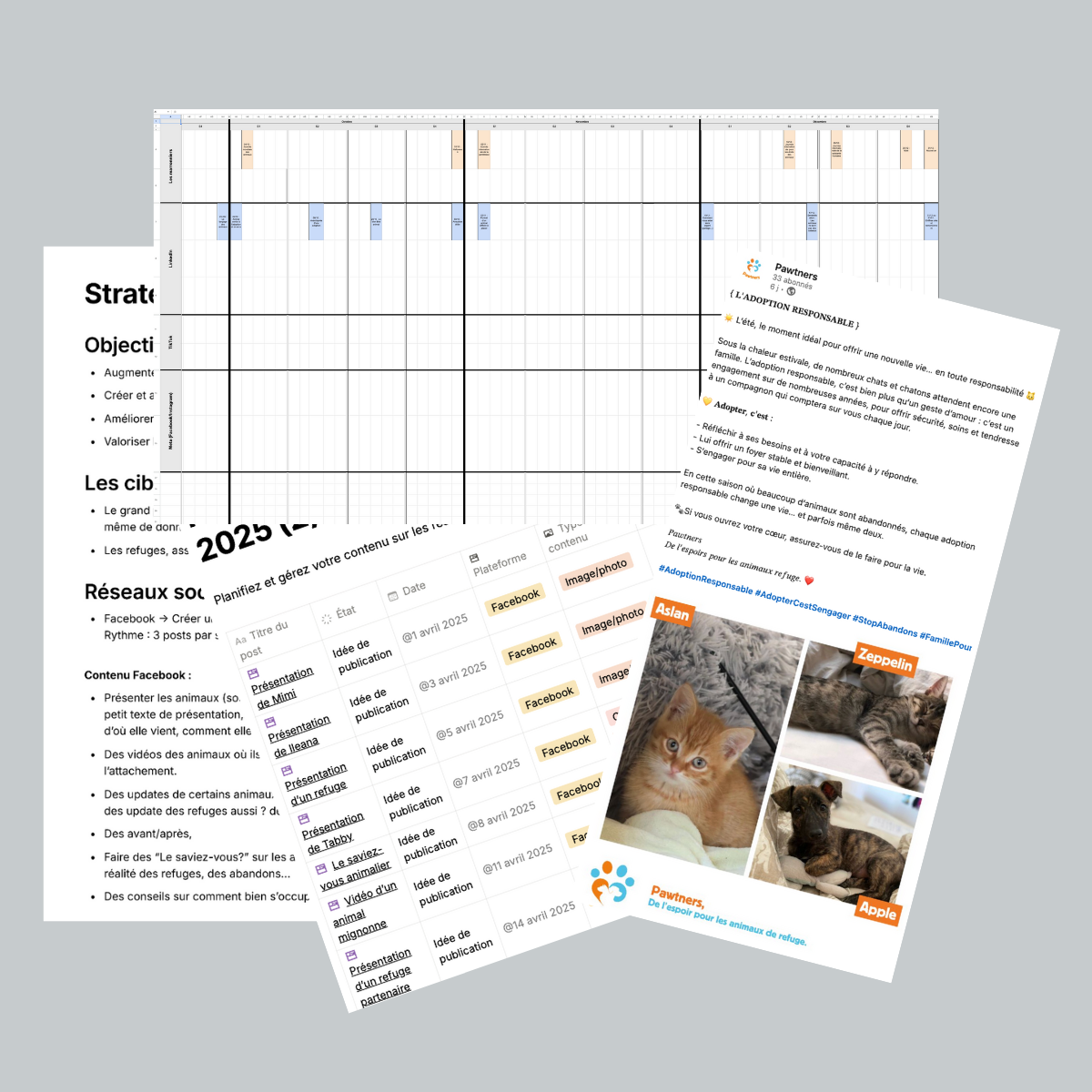L’objectif est de valoriser la mission de Pawtners où nous souhaitons créer un monde où chaque animal dans le besoin est pris en charge. Grâce à une stratégie digitale harmonisée, nous partageons nos actions, nos opérations de sauvetage et les bénéfices du parrainage, afin de sensibiliser, inspirer et engager notre communauté.