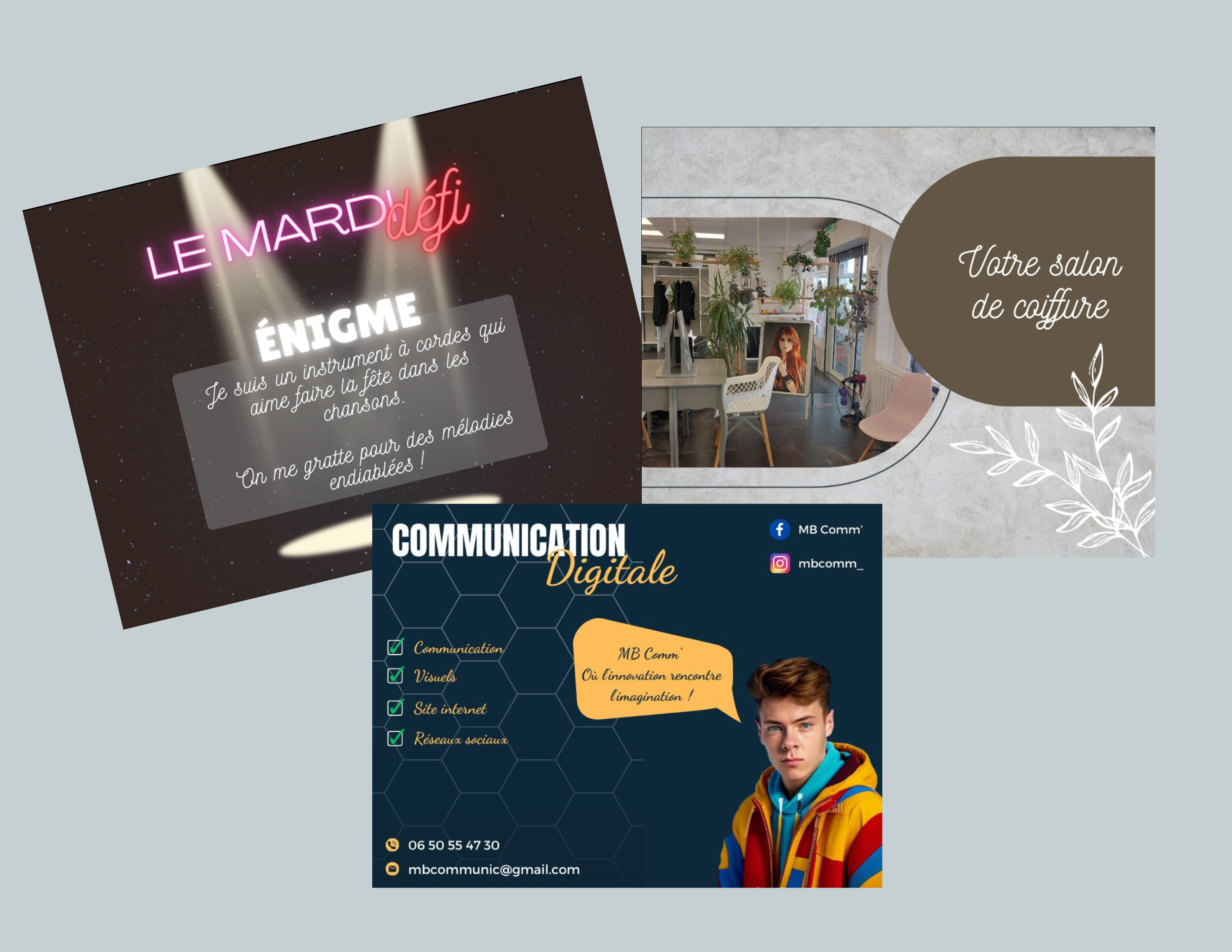 Pour le salon, j’étais responsable de la promotion des réalisations des coiffeuses, en planifiant et publiant du contenu lié à des événements spécifiques. J’ai également créé MB COMM’, une page dédiée à l’accompagnement en communication des micro-entrepreneurs, associations et petites structures.
