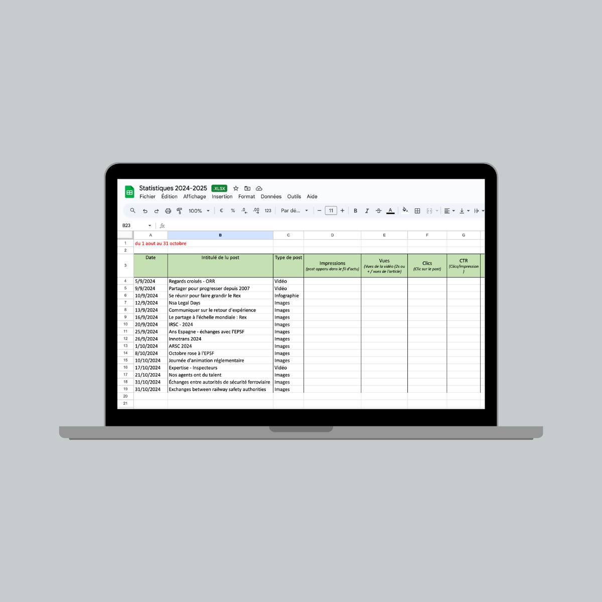 Au-delà du simple suivi chiffré, ce travail avait un double objectif. D’une part, il permettait de renforcer la transparence en interne en partageant régulièrement les résultats avec l’ensemble des collaborateurs/trices, favorisant ainsi une meilleure compréhension des actions menées sur les réseaux sociaux.